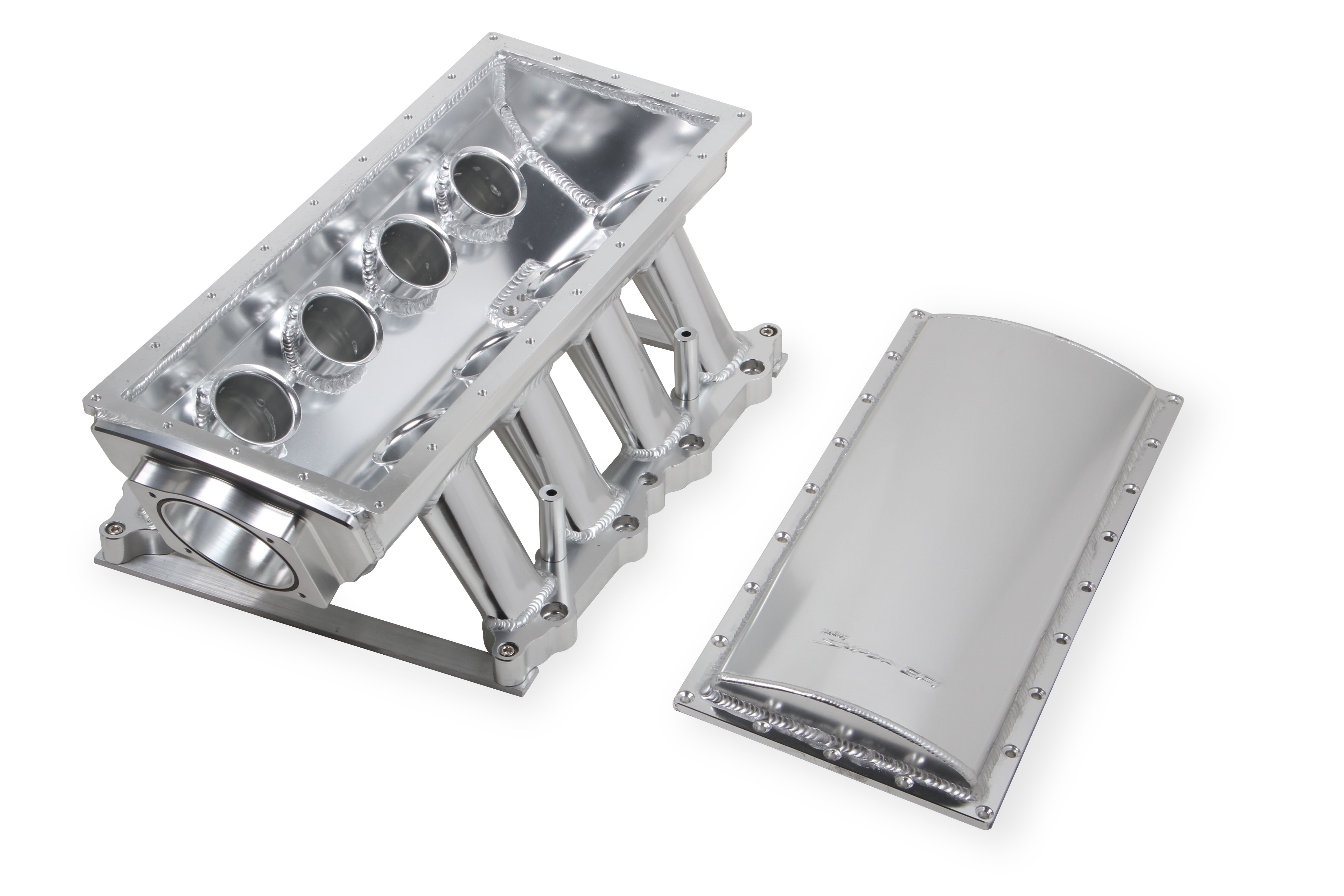 Holley Efi Hi-Ram Intake Manifold; Upper; Fits W/5.0l Coyote Engines; Ev6 Injectors; 90mm; Incl. Fuel Rail Kit; Fabricated; Silver;